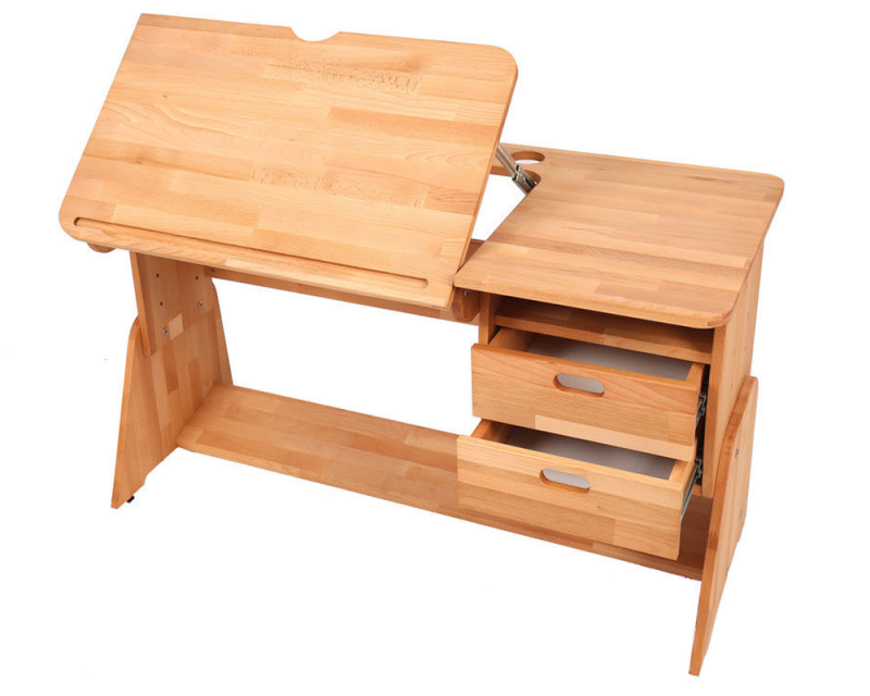 Парта Школярик С-412-1 изготовлена из натурального массива бука и имеет экологически чистое покрытие.